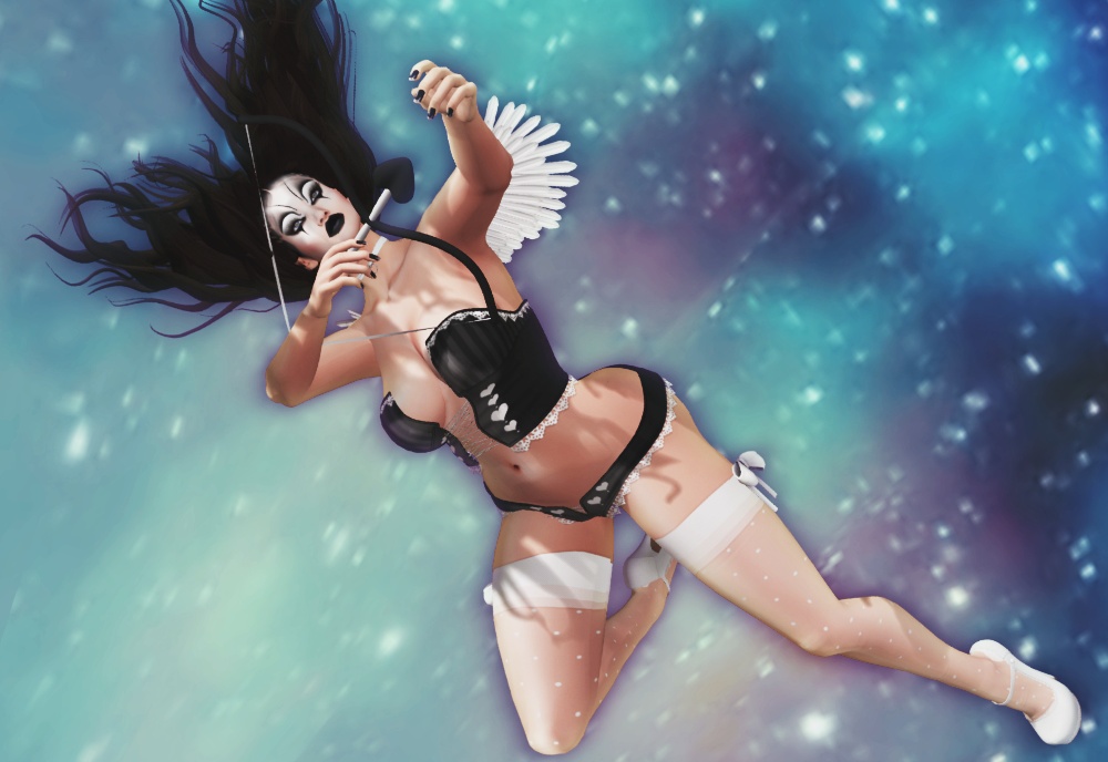 Outfit: Fatal Fashion - Outfit 181 LOVE BLACK (Top/Shorts, Stokings, Shoes, Choker, Wings and Bow NEW!!